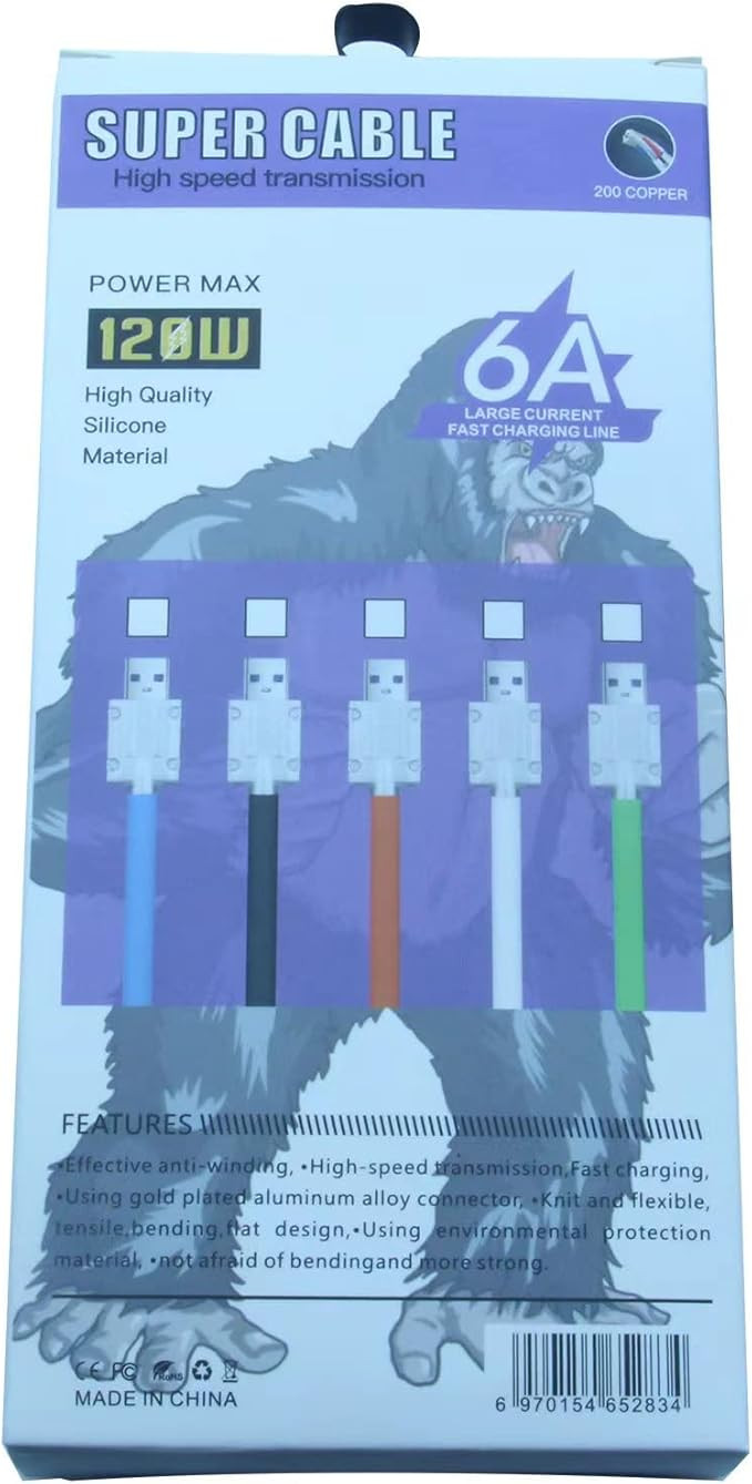 ابل سوبر جديد من بي دي دبليو زد ان ال ايه للموبايل أو الكمبيوتر واللاب توب نوع سي مايكرو لايتنج 120 واط 2 متر طول 2 متر أقصى طاقة نقل عالية السرعة 200 نحاسي