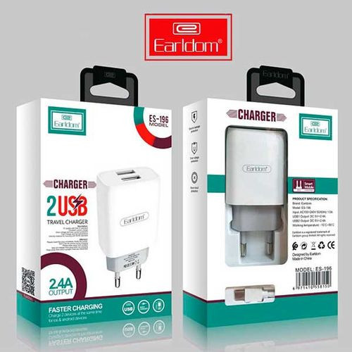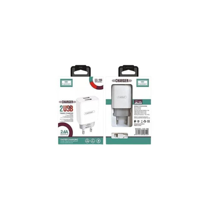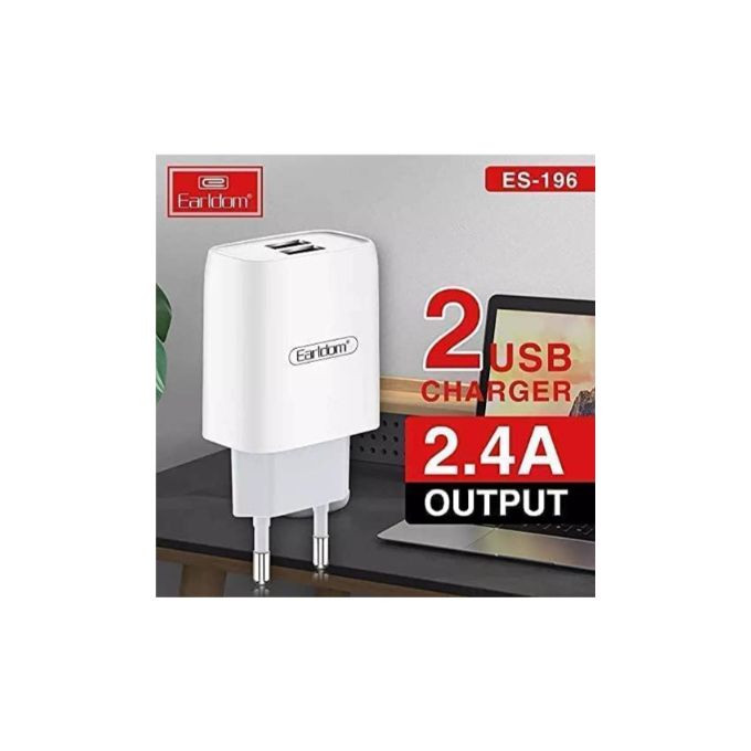 شاحن حائط ايرلدوم بمنفذين USB-A مع كابل تايب سى، بقوة 2.4 امبير، ابيض - ES-196